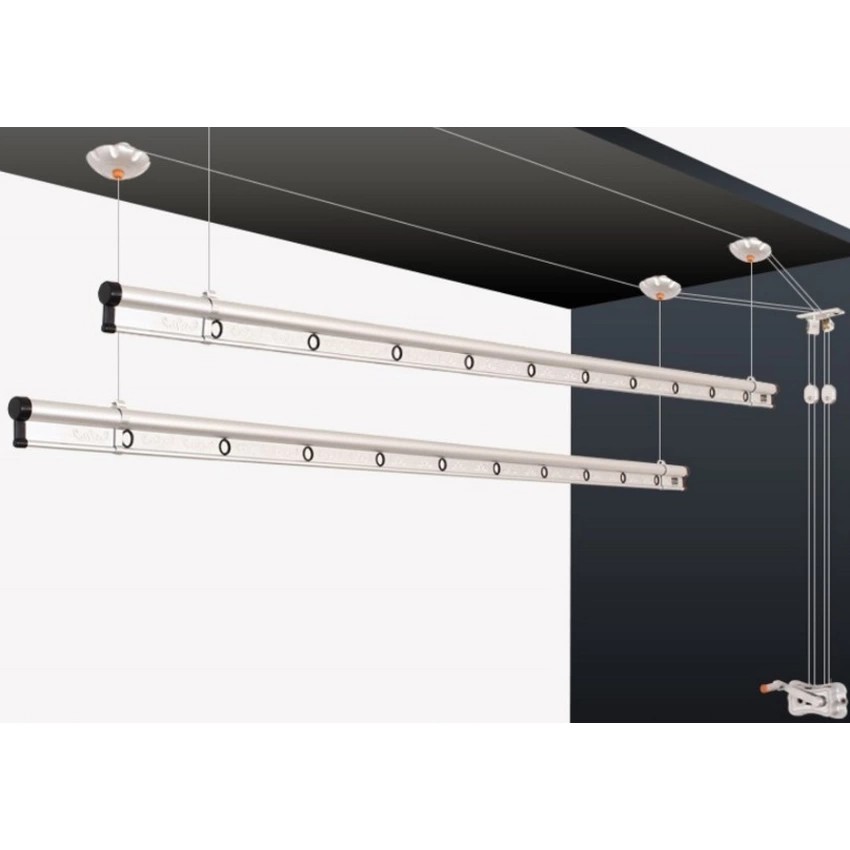 2 4m Ceiling Mounted Drying Rack Hand Lifting Aluminium Rails Shopee Malaysia