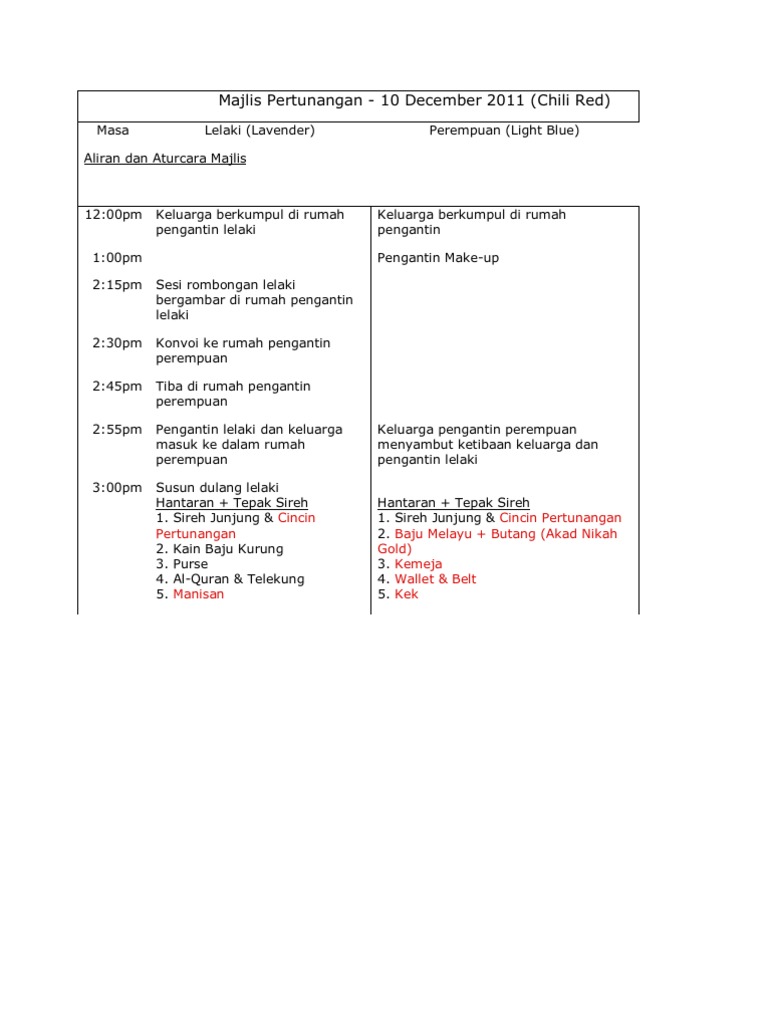 Contoh Atur Cara Majlis Perkahwinan