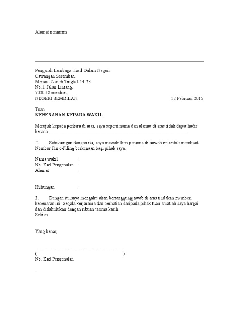Contoh Surat Wakil Pdf Document