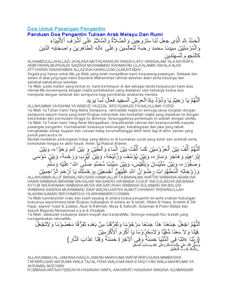Doa Untuk Pengantin Baru Dalam Bahasa Melayu