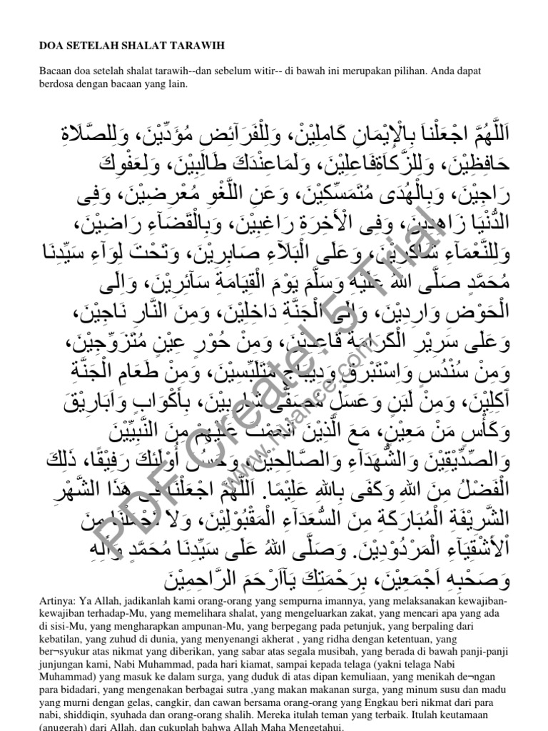 Pdf Create 5 Trial Doa Setelah Shalat Tarawih