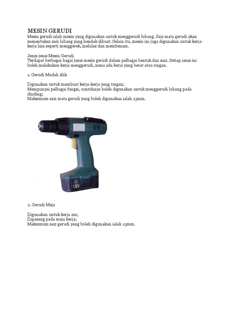 Pengenalan Mesin Mesin Asas Dalam Bengkel Mekanikal Pengenalan Mesin Gerudi