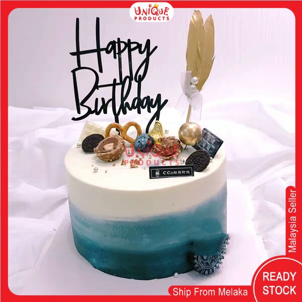 Ready Stock Black Gold Happy Birthday Cake Topper Arcylic Hari