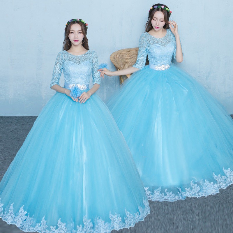 Jual Gaun Pengantin Warna Biru Kualitas Tinggi Biru Muda Kab