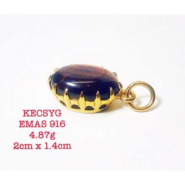 Loket Emas 916 Batu Tiger Eyes Handmade 4 87g Shopee Malaysia