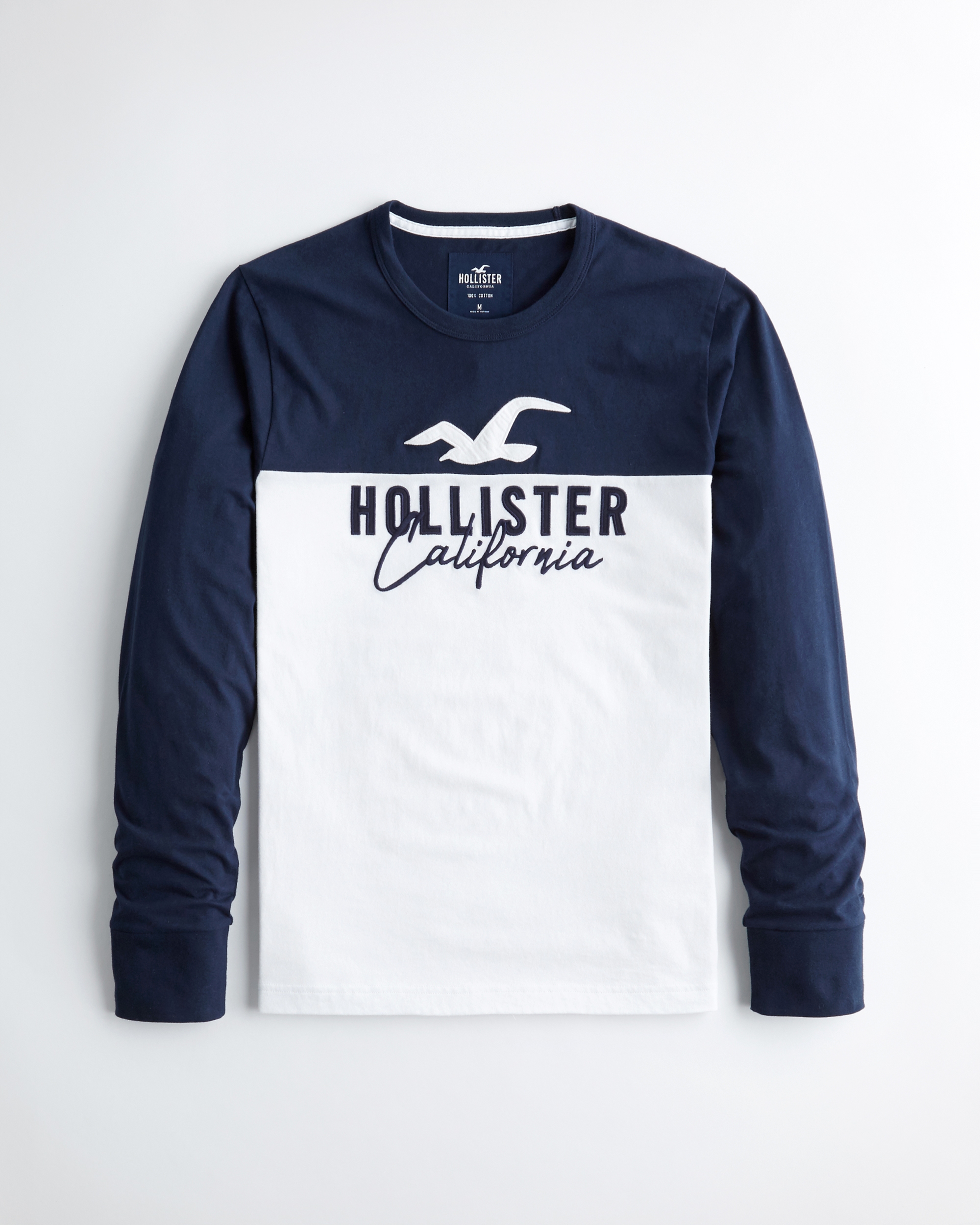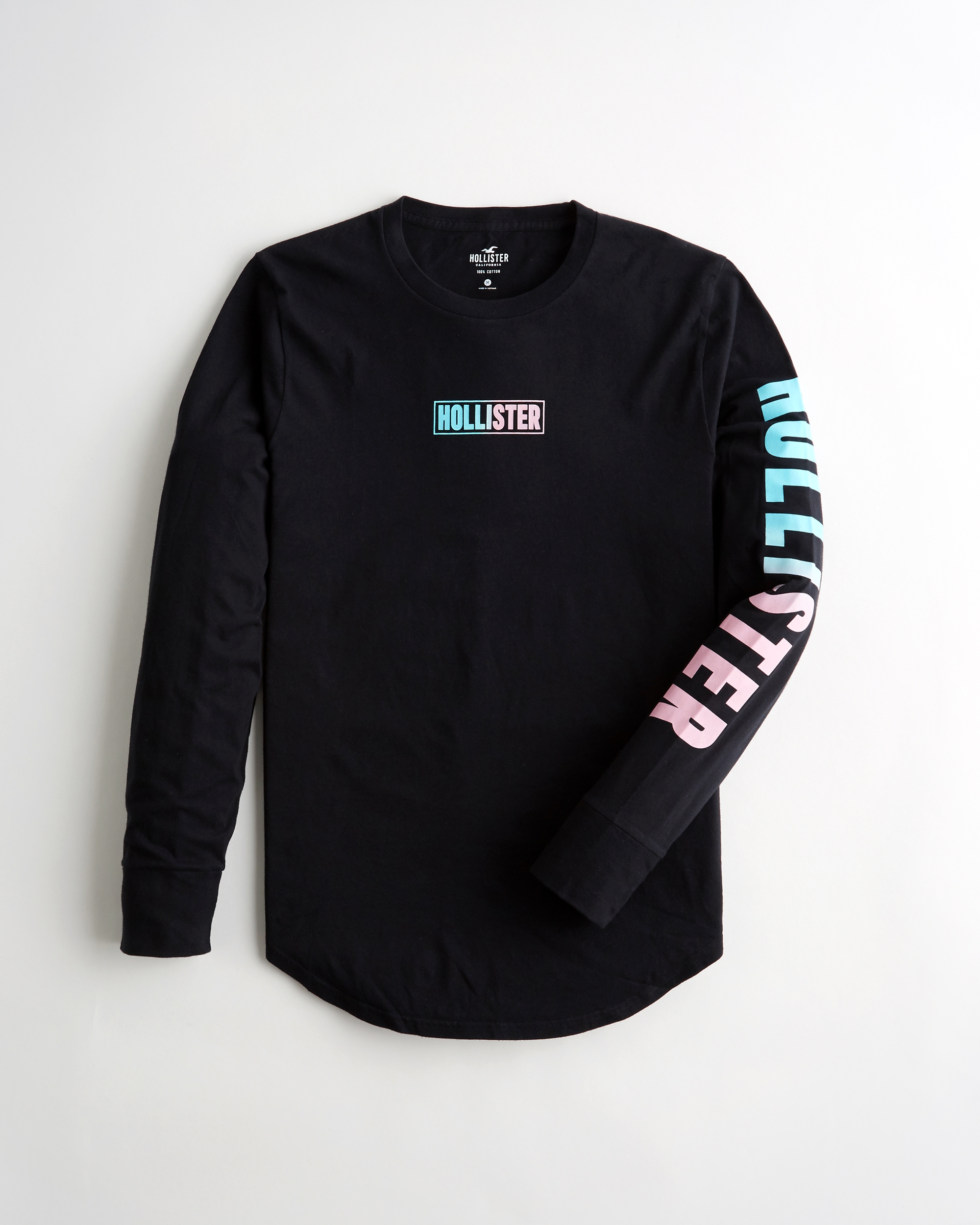 Hollister Men S Long Sleeve Logo Graphic Tee T Shirt Free Shipping Ebay